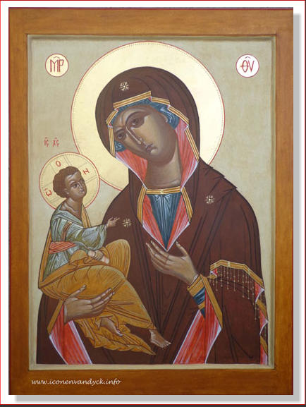 Ze is van het Hodegitria type, zij die de weg wijst. Het